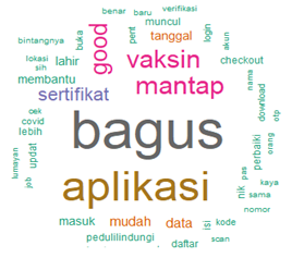 Figure 2, Figure 3, Figure 4, and Figure 5 are visualizations of words that many reviews appear between positive and negative sentiments. In the first picture, the words #application, #good, and #mantap are examples of words with positive meanings from user reviews. Then, for the second, #application, #difficulty, and #vaccine result from negative user reviews. So, based on the negative sentiment of Wordcloud, it can be helpful as an evaluation material for the Indonesian Government to improve the application so that this policy can follow its objectives. Table 5 shows suggestions for improving recommendations written by researchers based on Google Play and government policies.